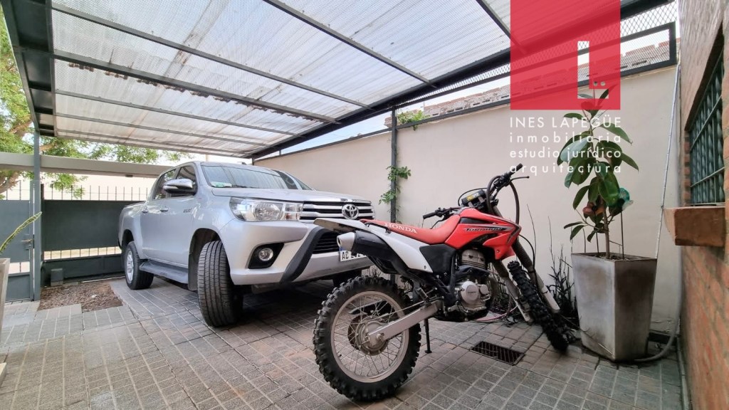 Posee 2 dormitorios, con cochera exterior cubierta para 2 vehículos (camioneta y moto) y un tercer vehículo al descubierto.