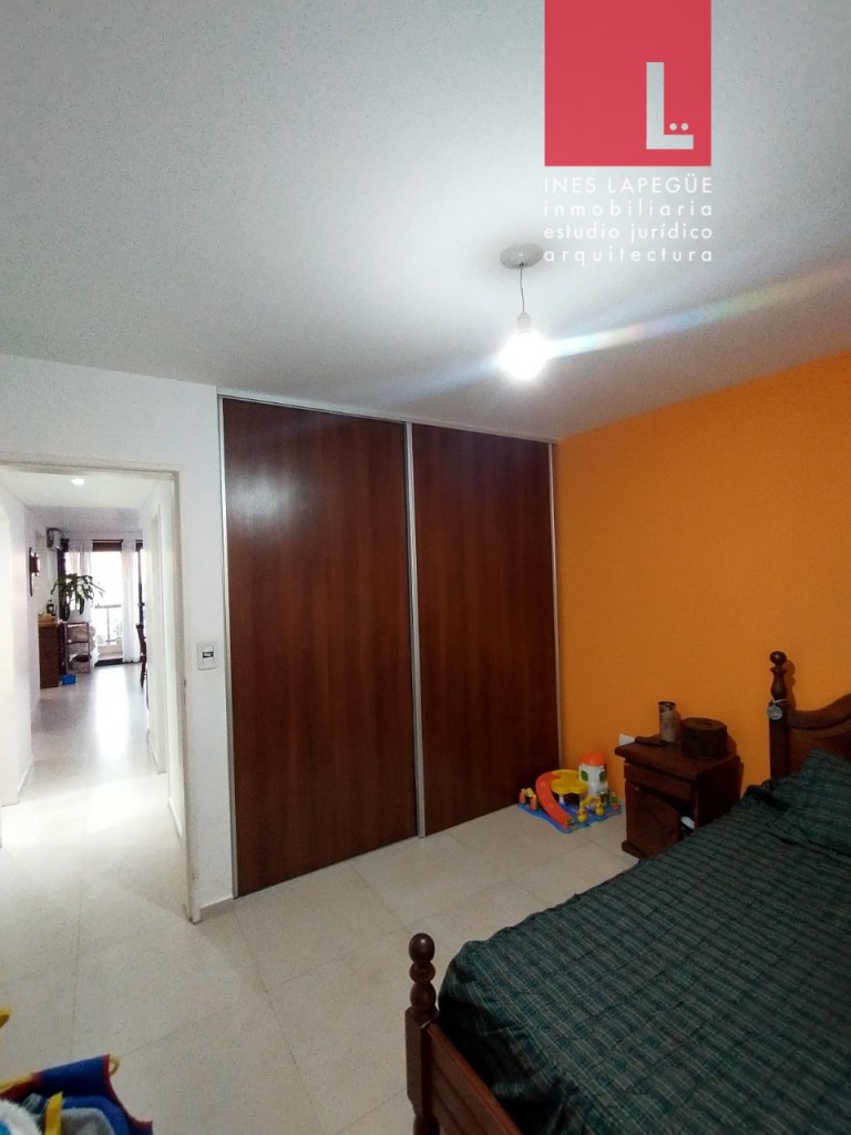 Departamento con 2 dormitorios, baño principal y baño de servicio. Balcón amplio y cocina separada por barra. Pasillo como hall de ingreso, dormitorios con armario y vestidor.