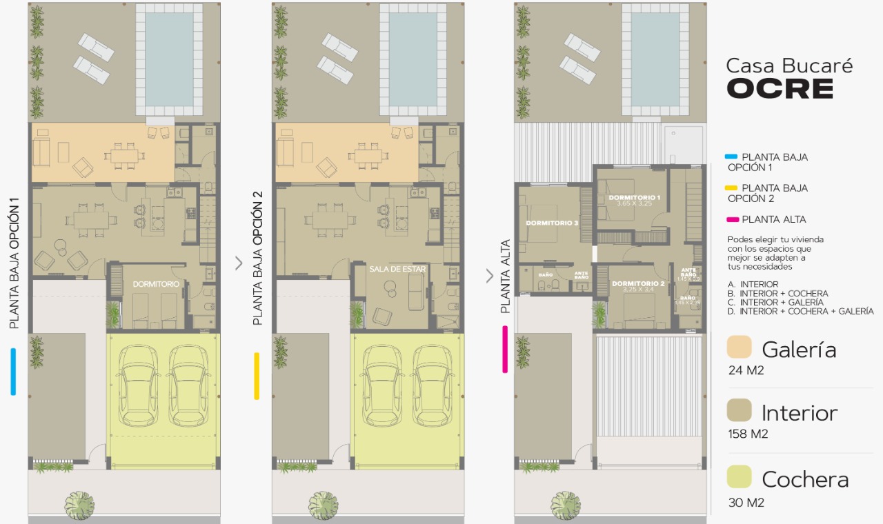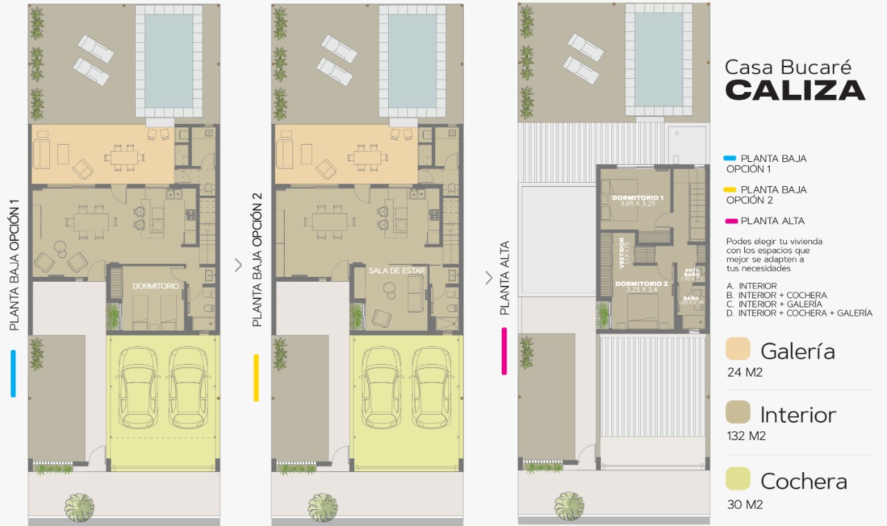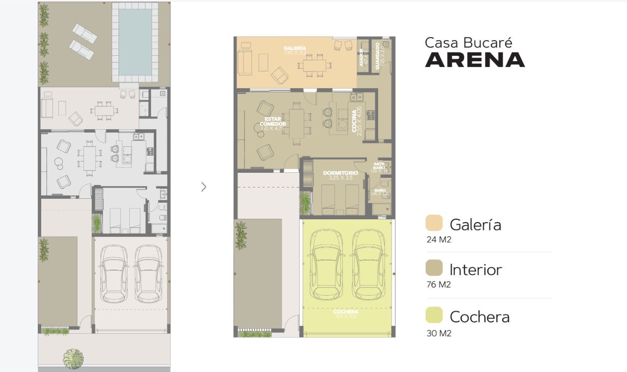 Etapa 1: Planta baja de 76 m2 cubiertos interiores, más 30 m2 de cochera y 24 m2 de galería con asador.