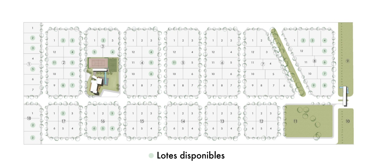 125 lotes desde 600 m2., espacios verdes, portal de ingreso, Club House e instalaciones deportivas.