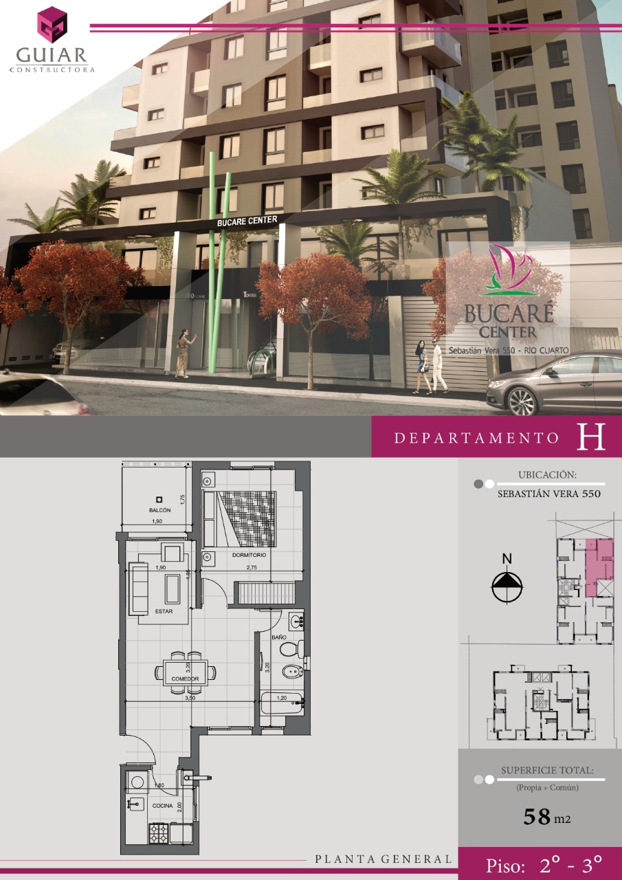 58 m2 totales (propios + comunes).