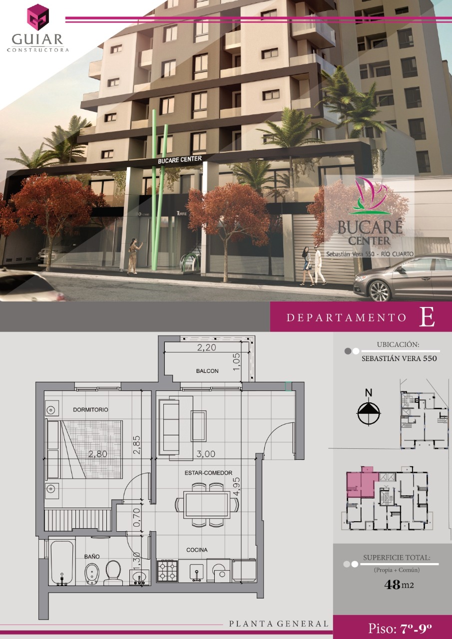 48 m2 totales (propios + comunes). Balcón 2,3 m2.