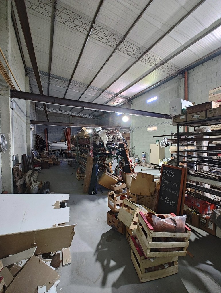 Galpón recientemente construido, realizado con materiales de alta calidad. Columnas de hormigón armado cada 5 mts y vigas de encadenado horizontal cada 3 mts. Altura total, 8 mts. Vigas IPN a lo largo de toda la construcción pensadas para soportar entrepiso.