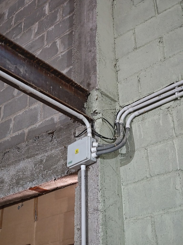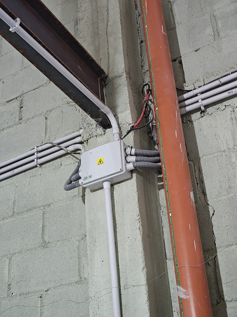 Línea trifásica, techo de chapa y aislante térmico.