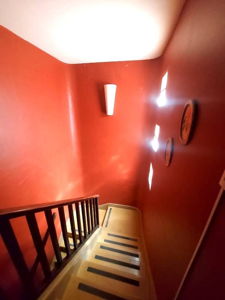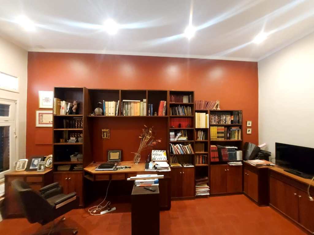 El hall de ingreso que distribuye al living y escritorio y al baño social, conduce también a la escalera (principal) de planta alta y al pasillo que lleva a la cocina, donde hay una barra que divide cocina de comedor.