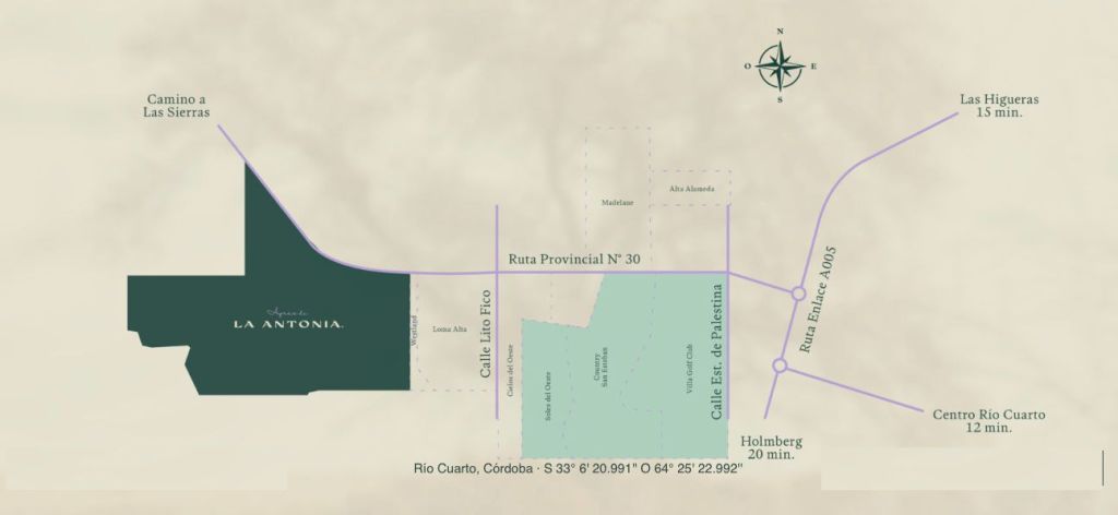 Ayres de la Antonia se proyecta como un polo de innovación urbana, estratégicamente ubicado sobre Ruta Provincial N°30, en el corazón del oeste de la ciudad y a solo minutos del centro. El barrio está concebido para ofrecer una experiencia integral, destacándose por sus amplias zonas verdes, que superan los 30.000 m², áreas deportivas y de esparcimiento.