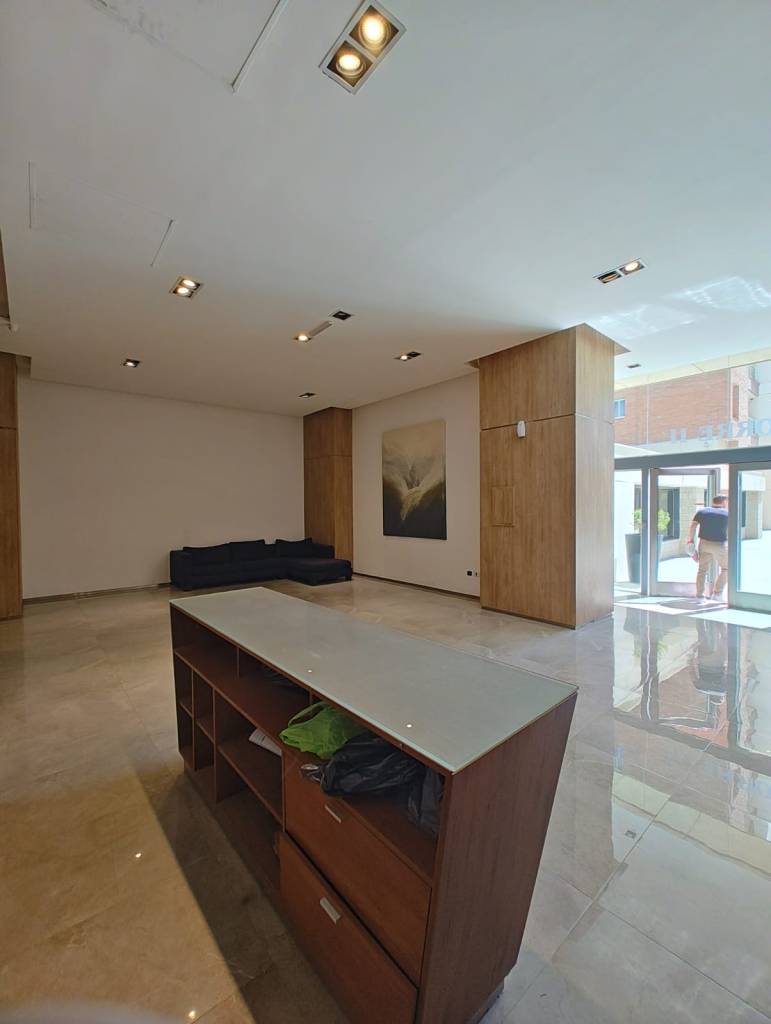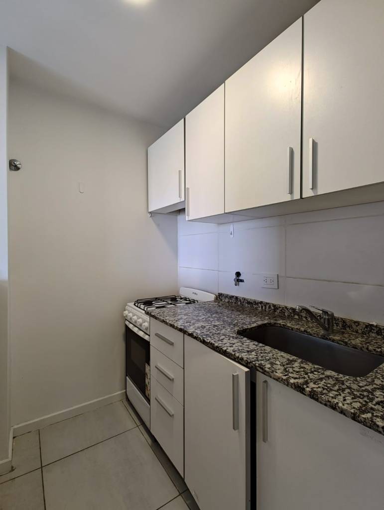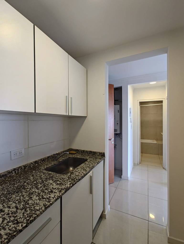 Departamento de 1 dormitorio con balcón (salida desde el dormitorio y desde living), cocina separada con barra. Un baño completo. Calefacción por radiadores, caldera dual. Pisos porcelanato. Edificio con seguridad 24hs, 2 salones de usos multioples.