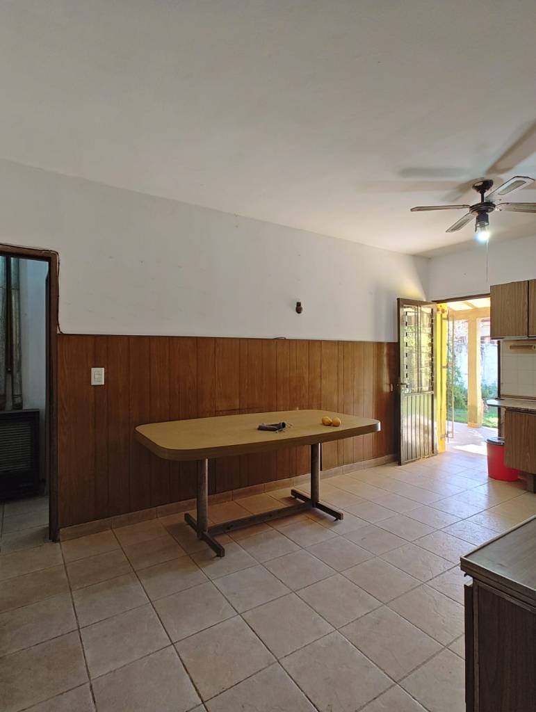 La vivienda cuenta con un pequeño living en el ingreso, una cocina comedor con salida a la galería y el patio, dos dormitorios (uno con vista al patio y otro al jardín del frente) y un baño completo. Dispone de una espaciosa cochera con capacidad para dos o tres vehículos, una galería orientada al norte, perfecta para disfrutar del sol, y un extenso patio que ofrece gran profundidad y privacidad.