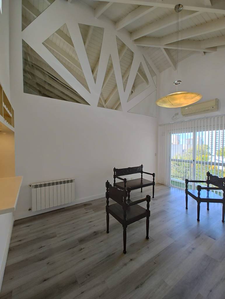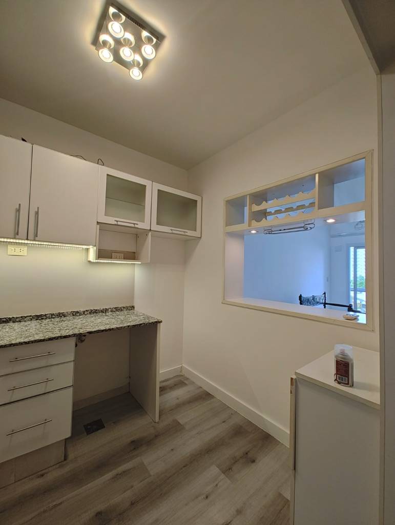 El departamento ofrece una distribución inteligente que prioriza la luminosidad natural en todos sus ambientes. Dispone de una cocina equipada, con una barra hacia el estar-comedor integrado de generosas dimensiones y acabados de calidad que garantizan confort y durabilidad.